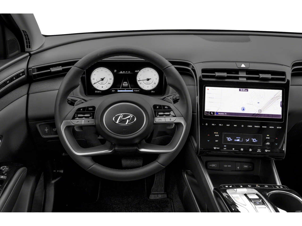 Scores 29 Highway MPG and 23 City MPG! This Hyundai Tucson delivers a Regular Unleaded I-4 2.5 L/152 engine powering this Automatic transmission. OPTION GROUP 01 -inc: standard equipment, BLACK, LEATHER SEAT TRIM, Wheels: 19" x 7.5J" Machine-Face Finish Alloy.