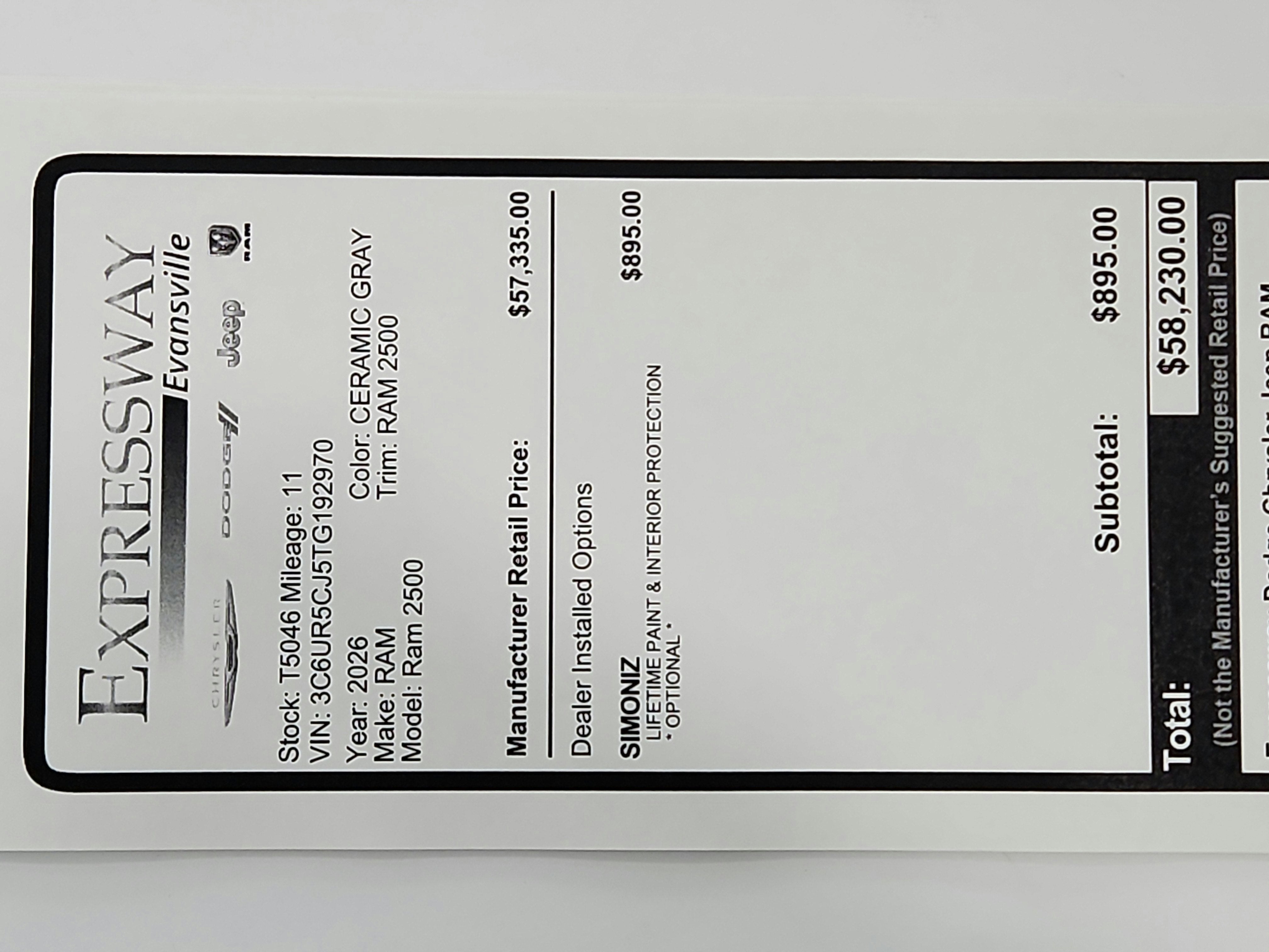 - Vehicle Name: Ram 2500